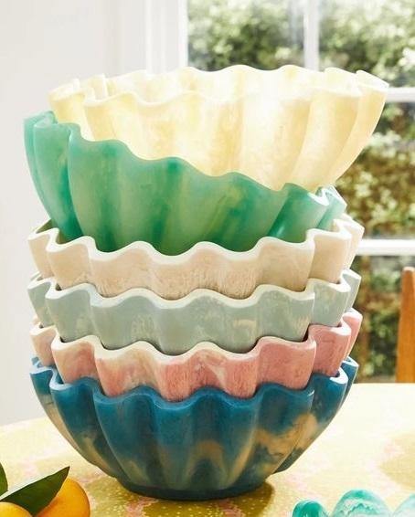 Frutero de Resina Multicolor de Alta Calidad, Diseño Moderno Único Hecho a Mano, Vajilla con Logotipo Personalizable, Libre de BPA