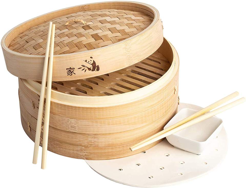 Cesta de bambú reutilizable de alta calidad, duradera, protección del medio ambiente, vaporera con tapa