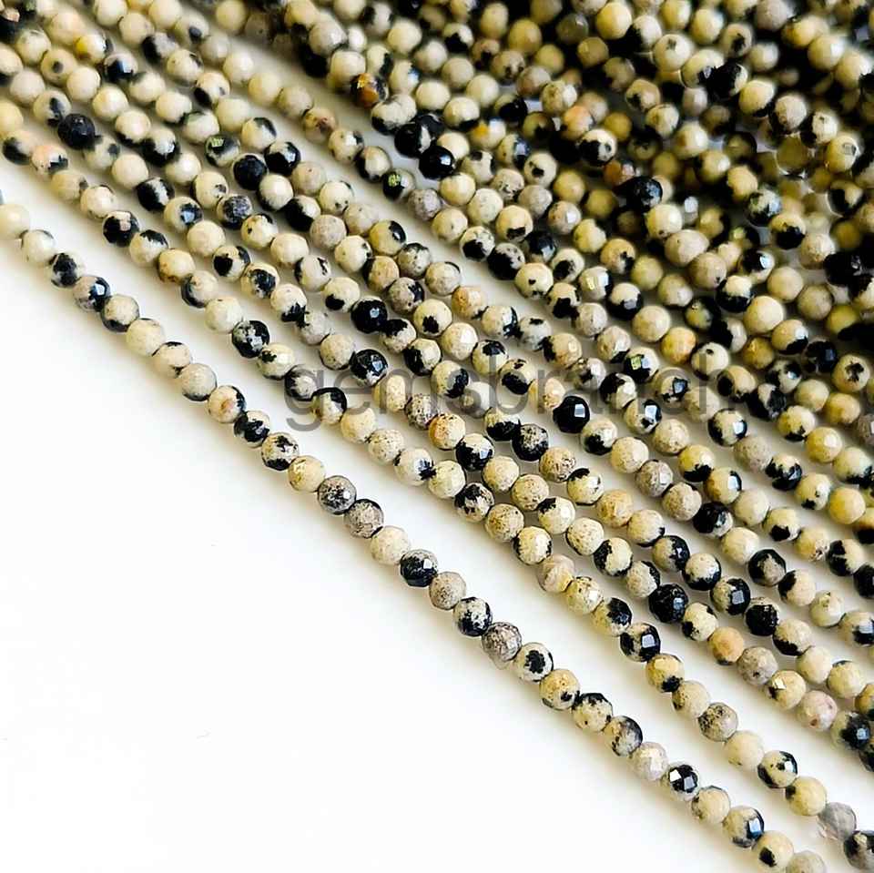 Nombre del producto:Dálmata Jaspe Micro Faceted Round Beads
