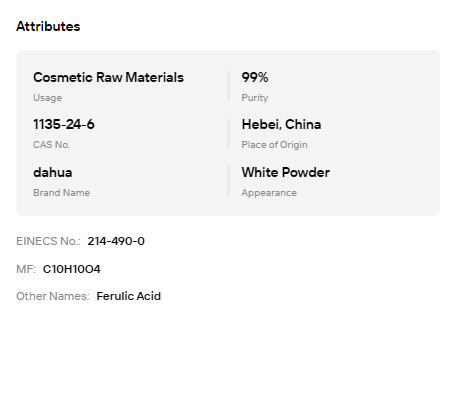 Polvo de Ácido Ferúlico Natural de Alta Calidad, Grado Superior, Activo para el Cuidado de la Piel, Antienvejecimiento e Iluminación de la Piel