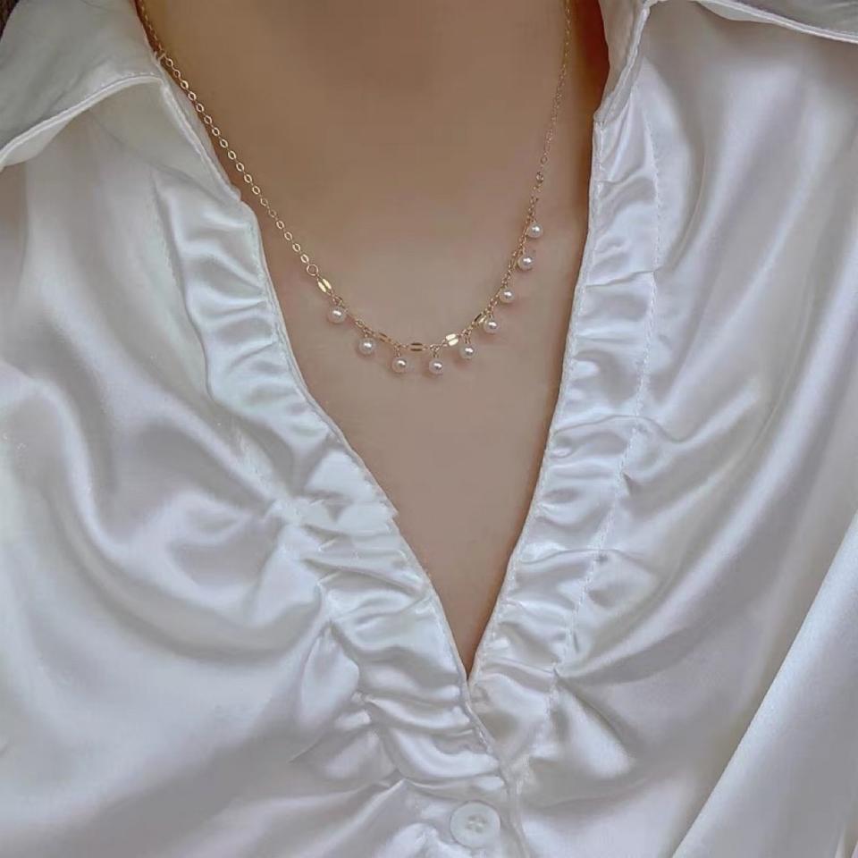 Collar de Perlas de Agua Dulce Naturales de Alta Calidad, Elegante y Minimalista, Cadena de Oro de 18K para un Estilo Diario