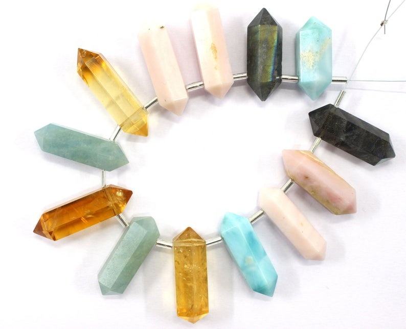 Cuentas de Briolette facetadas de piedras preciosas múltiples naturales de alta calidad, forma de lápiz, doble punta para joyería hecha a mano, venta al por mayor