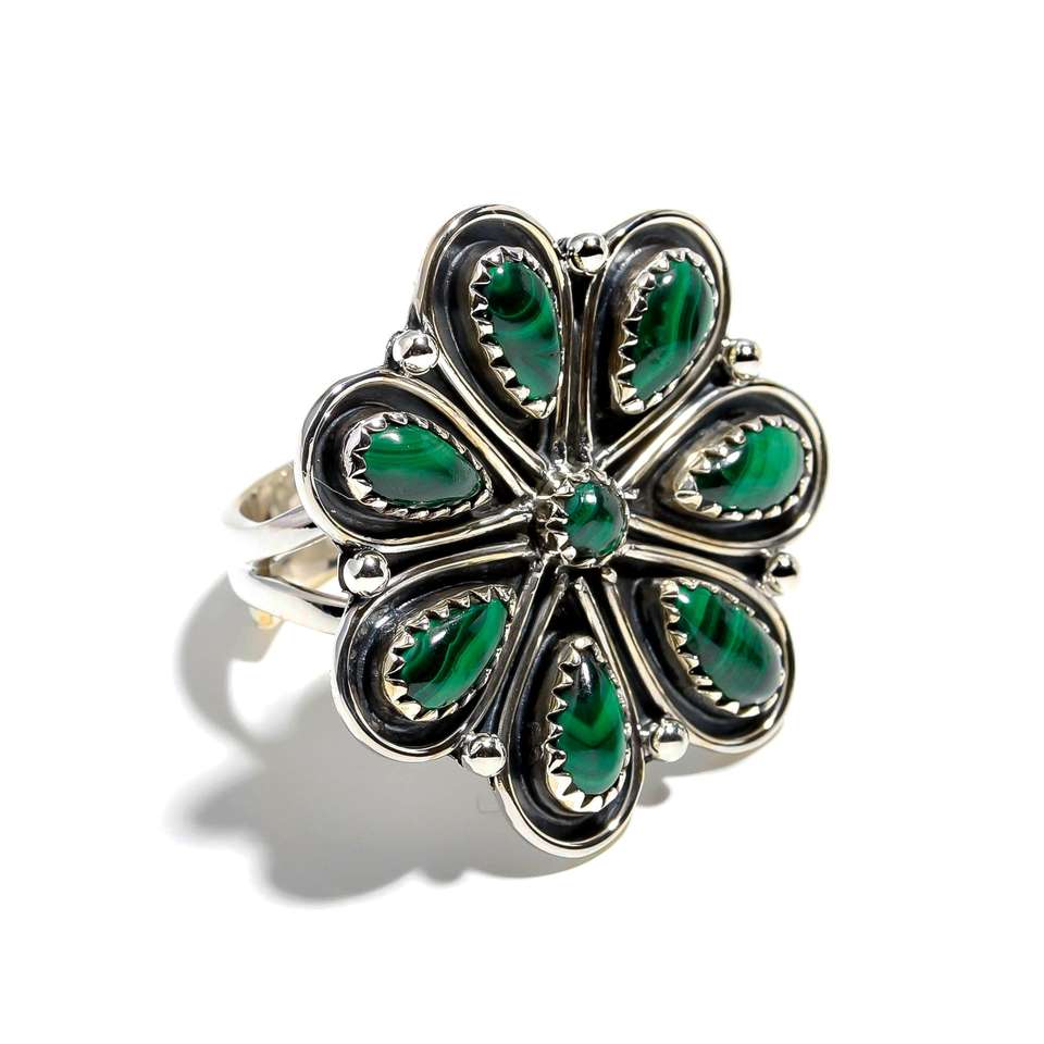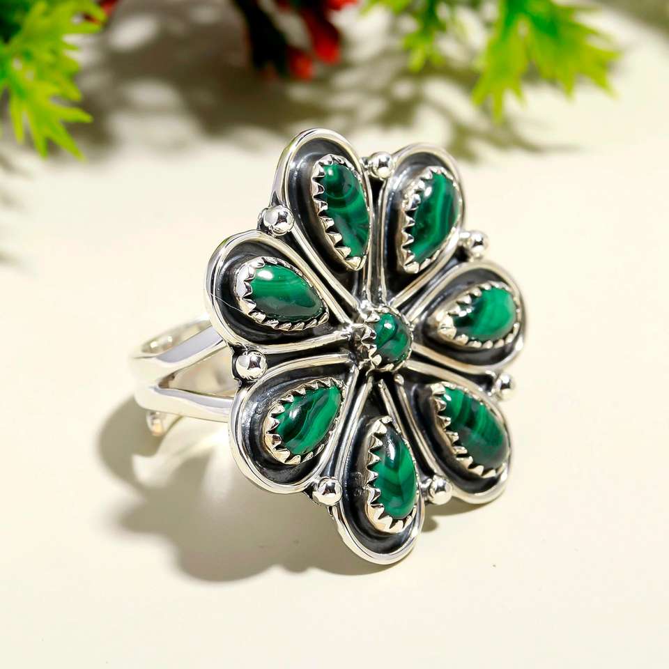 Pera Natural de alta calidad y piedra preciosa de malaquita de corte redondo anillo hecho a mano joyería de plata de ley 925 precio de fábrica al por mayor