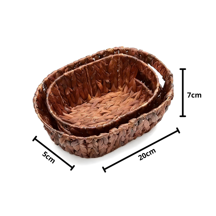 Cesta de almacenamiento ovalada tejida a mano de bambú de ratán Natural de alta calidad, asas de transporte, estilo jacinto de agua para decoración de lavandería del hogar
