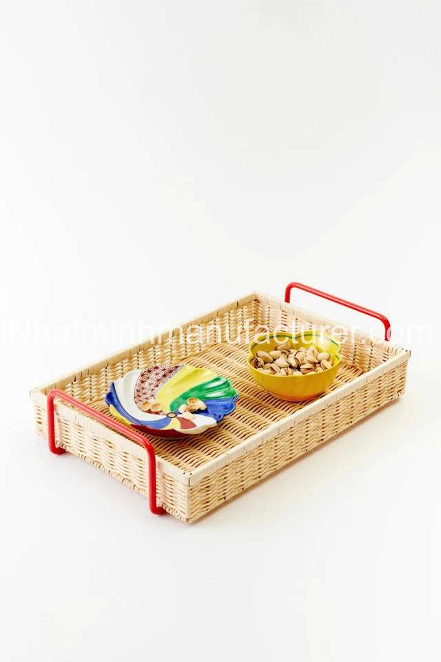 Bandejas de ratán Natural de alta calidad, cesta de almacenamiento de aperitivos para fiestas de cocina, bandeja de servicio tejida de mimbre para cafetería