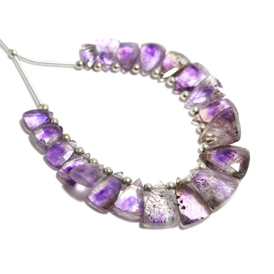 Cuentas facetadas de amatista Super Seven naturales de alta calidad Cuentas de piedra con forma de trillón