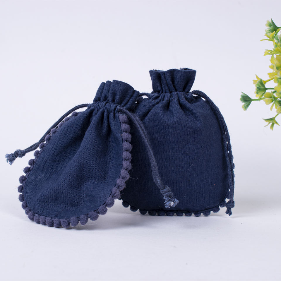 Contenedor de joyería con cordón de algodón azul marino de alta calidad, diseño indio hecho a mano, logotipo personalizable para embalaje de regalo