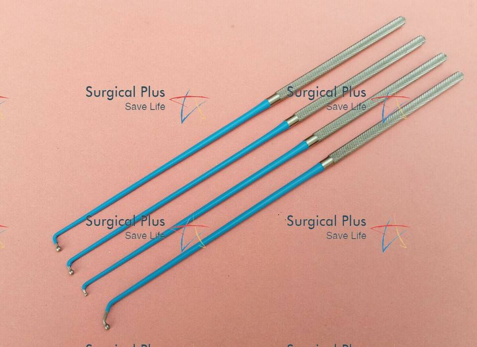 Juego de 4 Dissectores Microbola Expandidos Neuroquirúrgicos de Alta Calidad, 9.5'', Azules, Aislados, Instrumento Neuroquirúrgico con Certificación CE