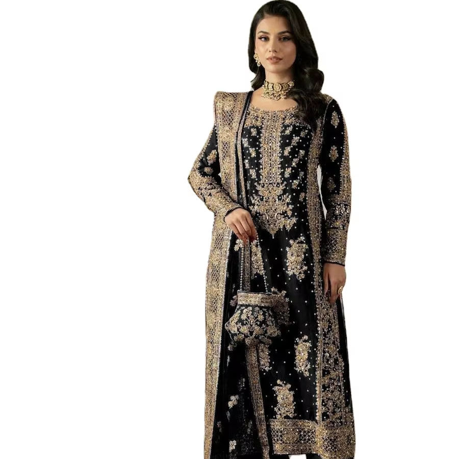 Nuevo diseño de alta calidad Calidad superior Totalmente cosido Micro Silk Salwar Kameez con borde de encaje Trabajo Dupatta Set
