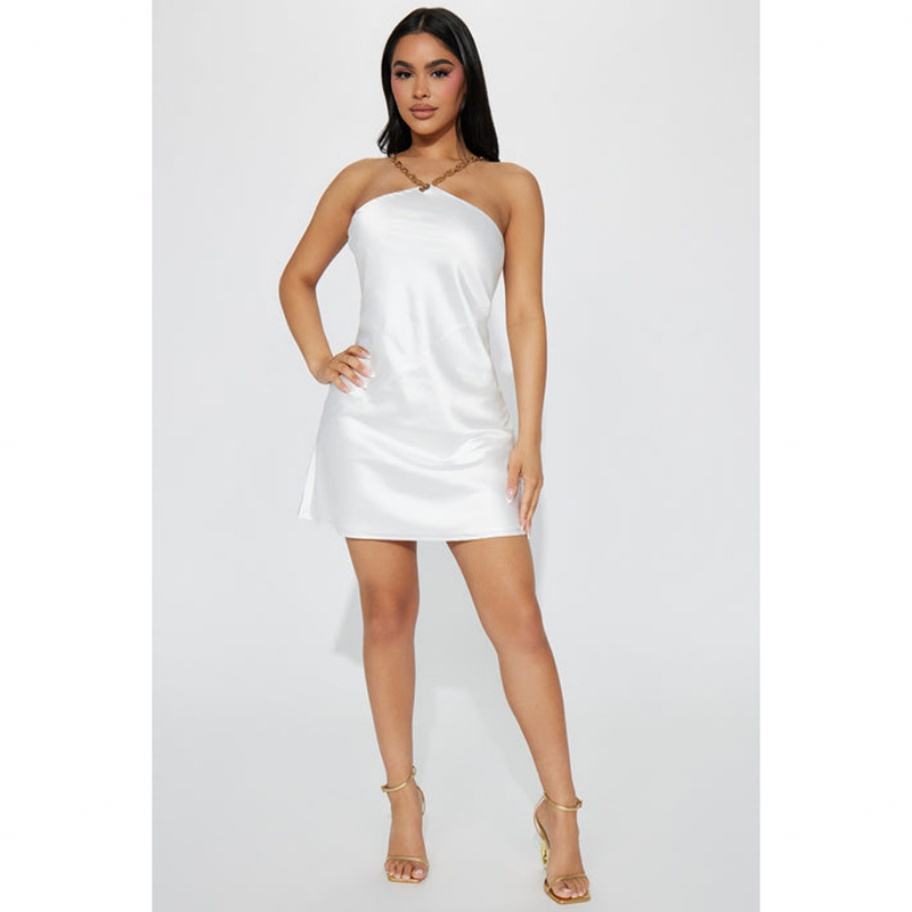 Vestido de Mujer Sexy para Fiesta, Diseño Nuevo de Alta Calidad, Satinado, con Cadena Dorada, Mini, Casual, Cintura Natural, Primavera