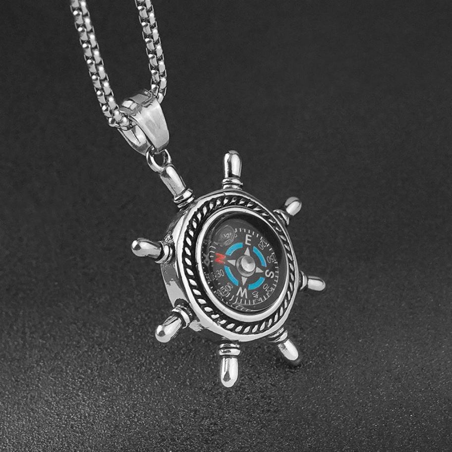 Collar de Cadena de Acero Inoxidable Vintage para Hombre, Colgante de Brújula Posicionable de Moda, Joyería Hip-Hop para Hombre de Alta Calidad
