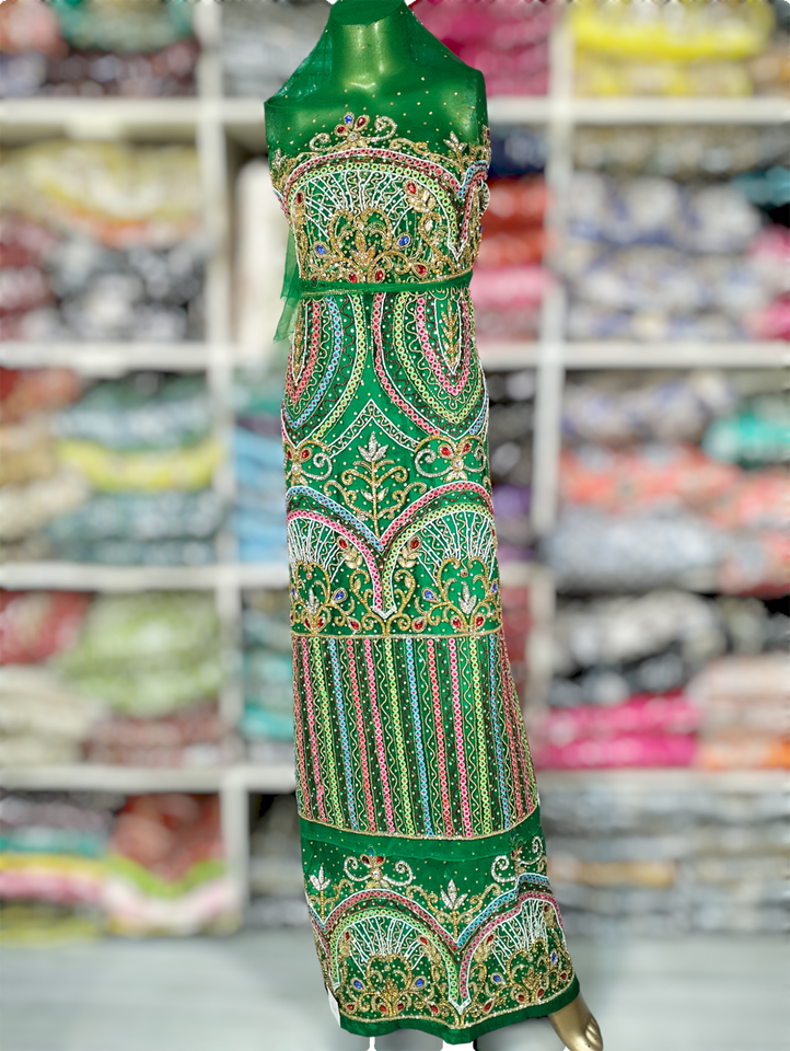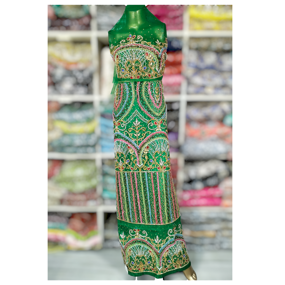 Característica::Encaje neto con cuentas pesadas + tela de seda