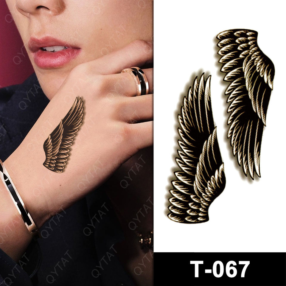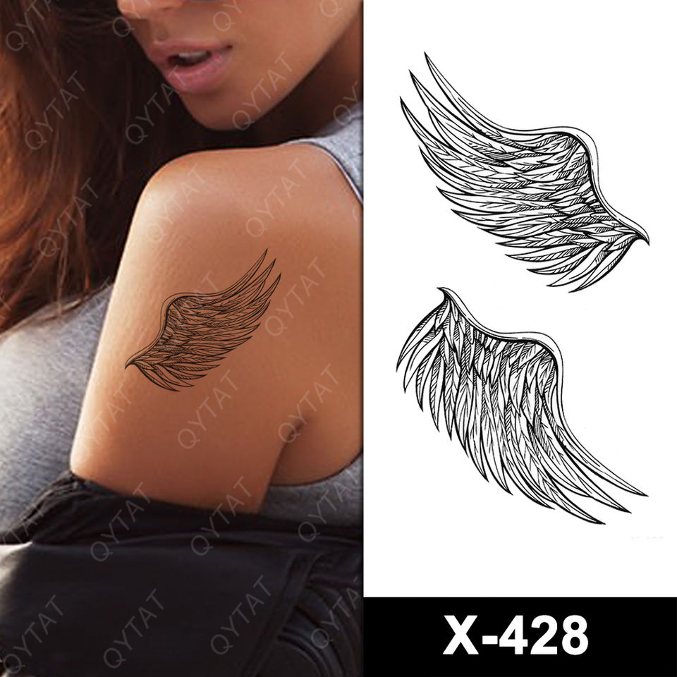 Alta calidad no tóxico tamaño pequeño tinta impresión Tribal hombres mujeres negro temporal alas de Ángel tatuaje pegatina