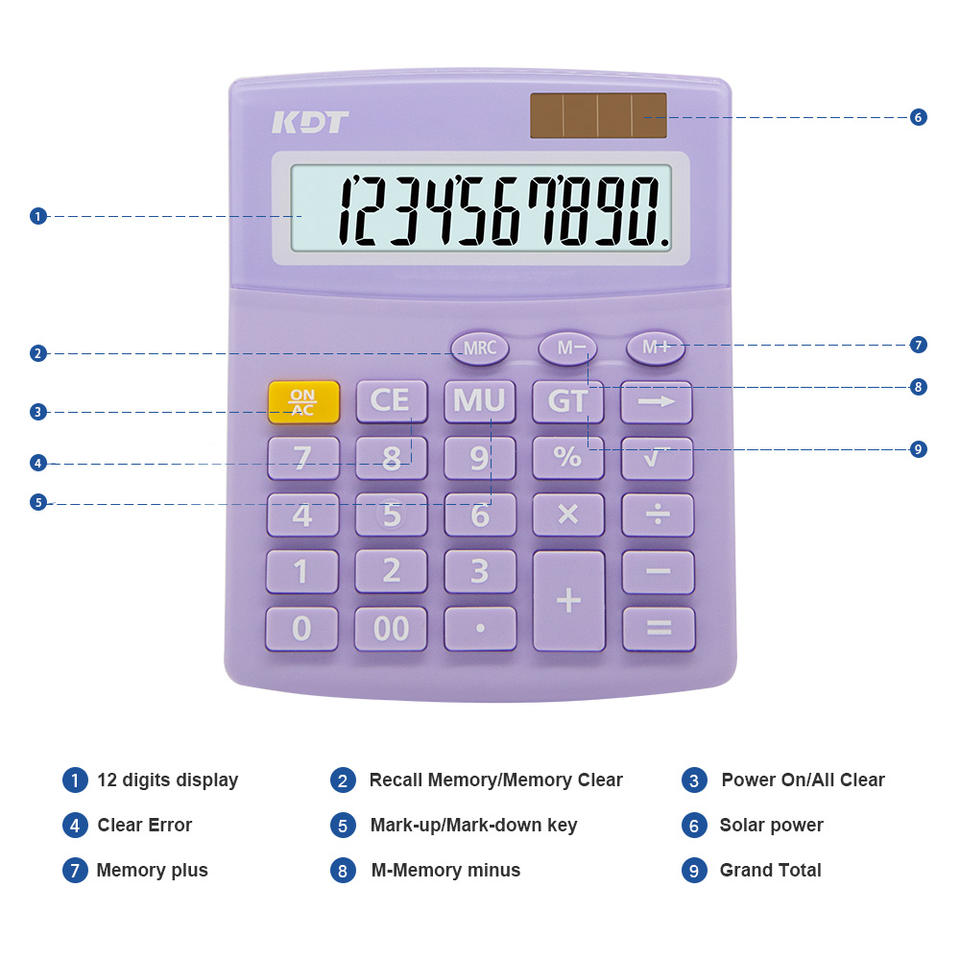 Calculadora Portátil de Goma de 12 Dígitos de Alta Calidad con Función Normal de Fábrica, Pantalla LCD Grande y Doble Alimentación para Finanzas