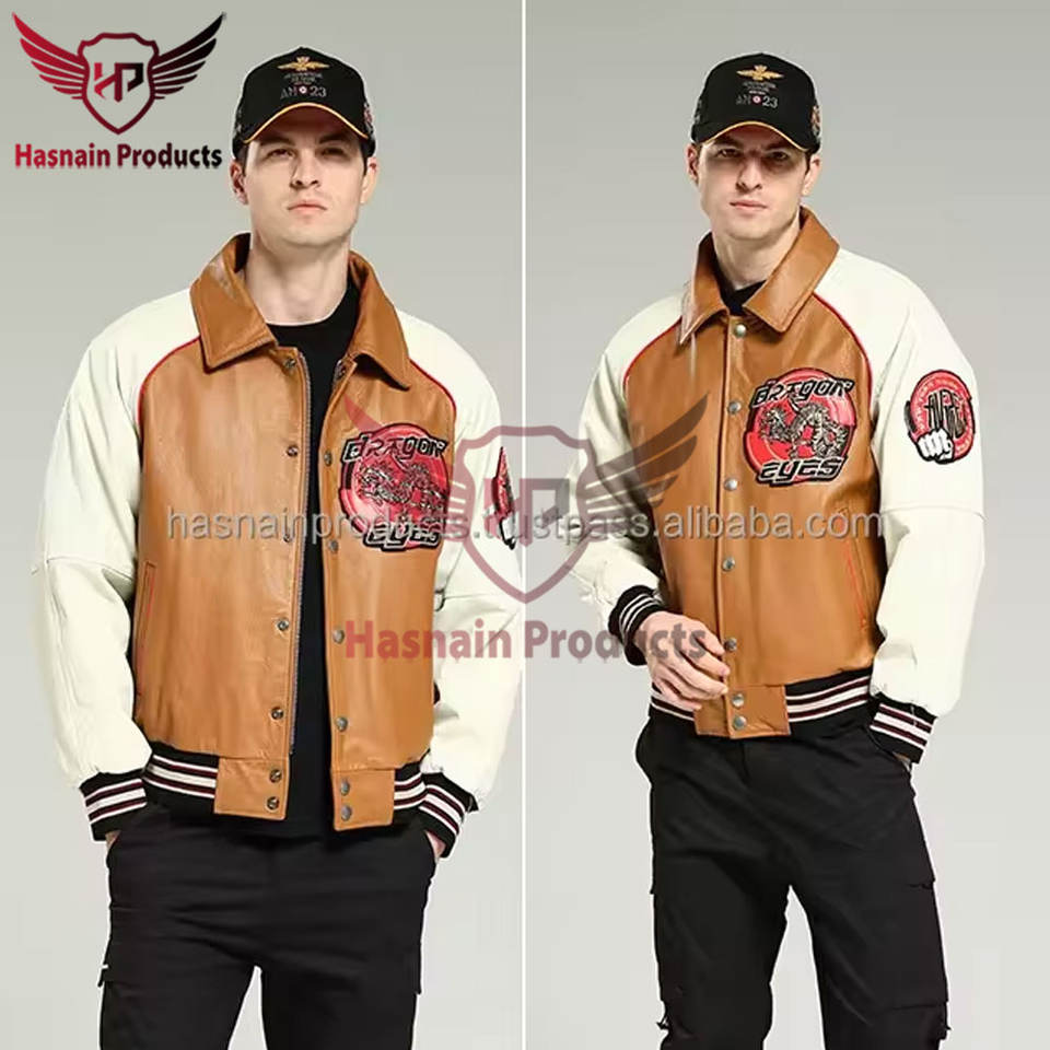 Chaqueta de cuero de bombardero de primavera y otoño de invierno para hombre ODM de alta calidad con bordado elegante producto terminado al por mayor