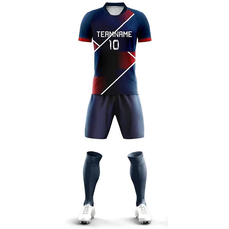 Uniformes de Fútbol OEM de Alta Calidad, Diseño Personalizado, Impresión por Transferencia de Calor, 100% Poliéster, Transpirable, Secado Rápido, Cuello Redondo, Manga Corta