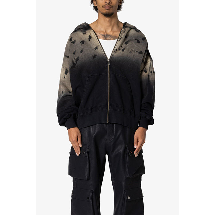 Sudadera con Capucha de Manga Larga Personalizada de Alta Calidad, Estilo Vintage, Teñida, Desgastada, con Estampado