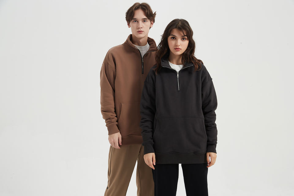 Suéter de Cuello Alto Unisex de Alta Calidad OEM ODM, Logotipo Personalizado, Cuello Simulado, Sudadera con Media Cremallera para Hombre, Envío DDP