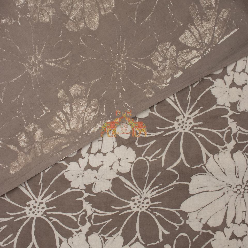 Tela de Algodón Orgánico Puro de Alta Calidad, Tejida a Mano, con Diseño de Flores Grises Kashish, para Decoración del Hogar, Manualidades y Camisas para Niños