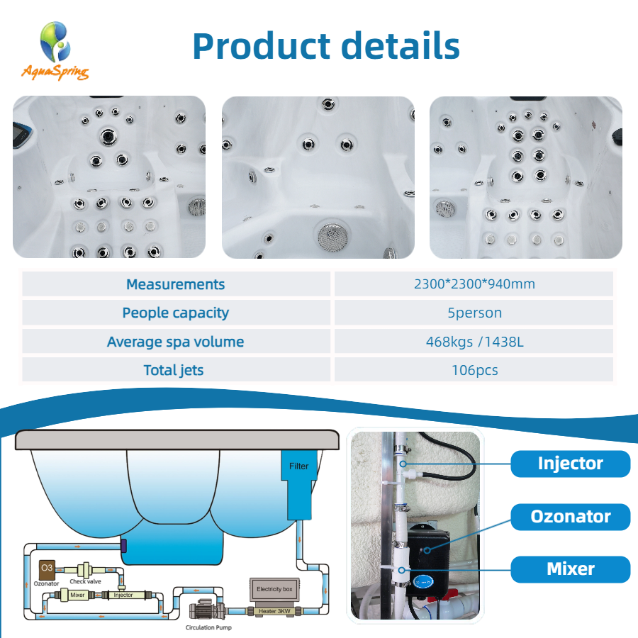 Alta calidad al aire libre 5 personas Shell acrílico Jacuzzier máquina de producción de bañeras de hidromasaje al aire libre Spa bañeras de spa con 2 filtros