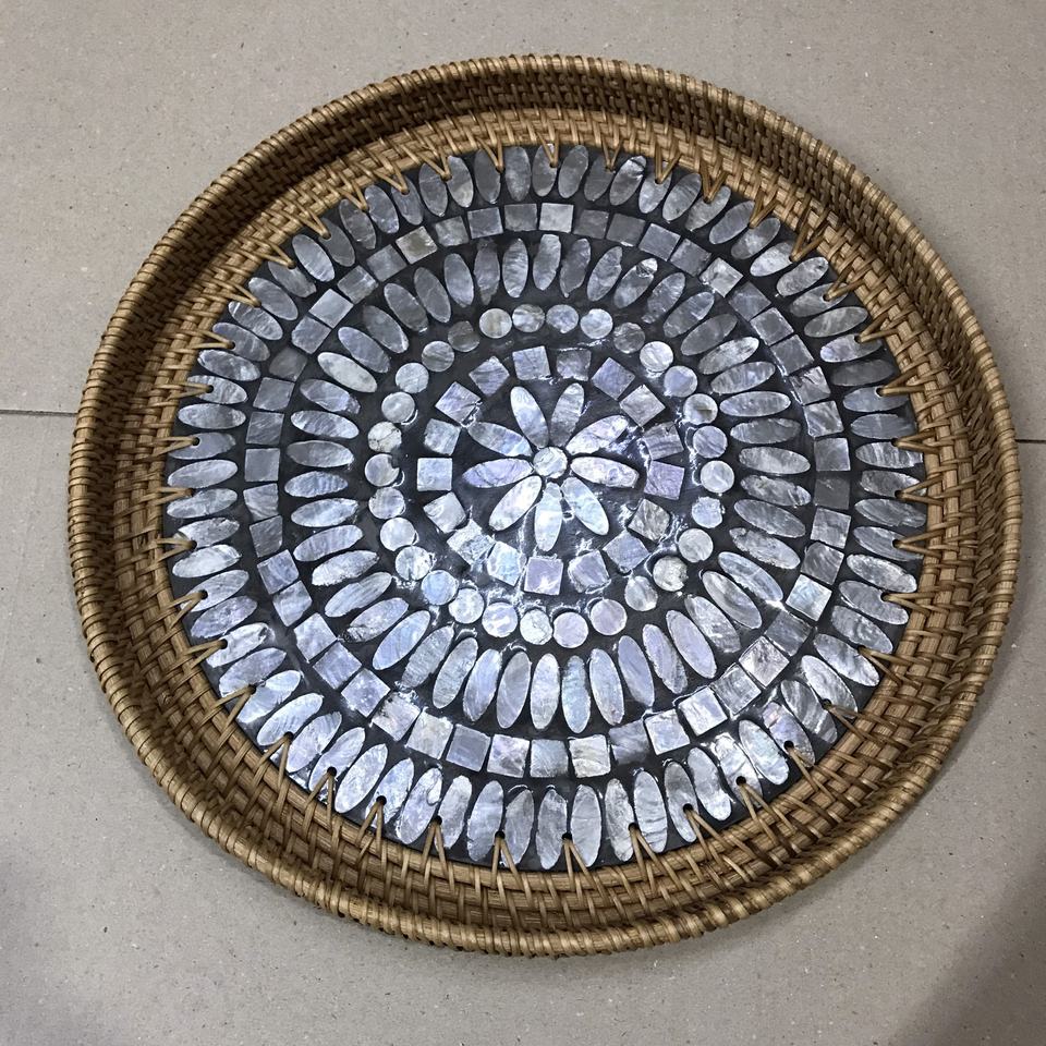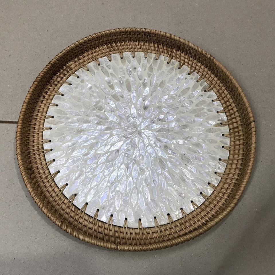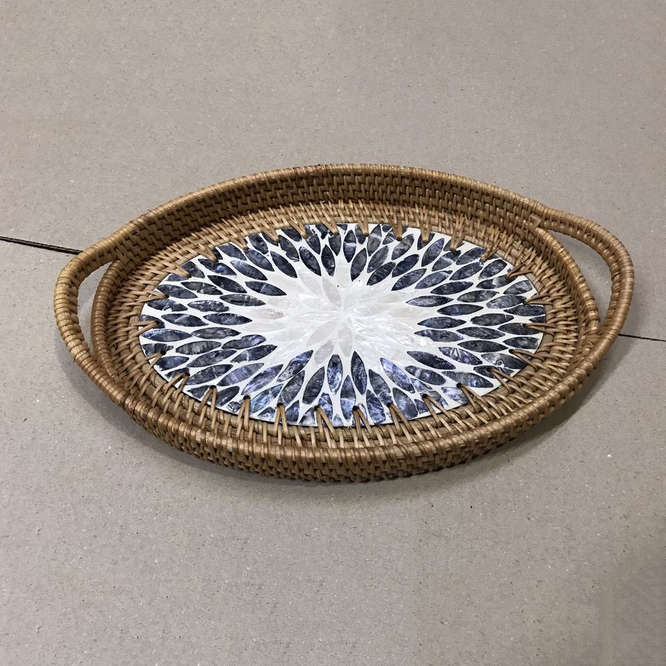 Bandejas para servir de madreperla de ratán de forma ovalada de alta calidad, superventas con mango, venta al por mayor de Vietnam a precio barato