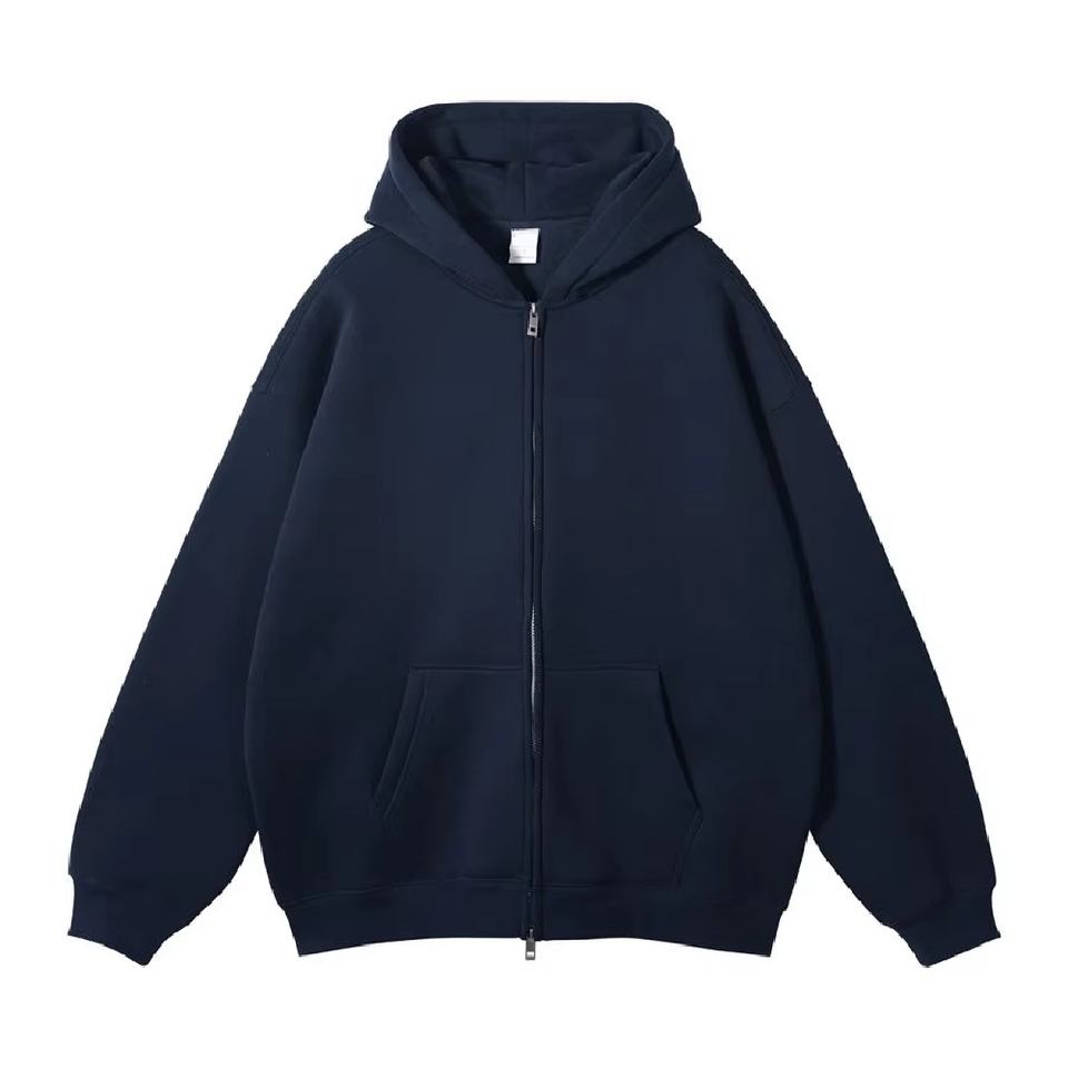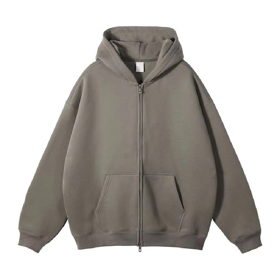 Sudadera con capucha y cremallera de lana de gran tamaño de alta calidad para hombre, ropa de calle de invierno de nueva tendencia con logotipo personalizado, patrón sólido