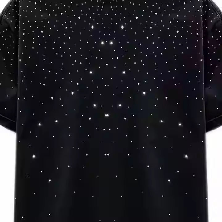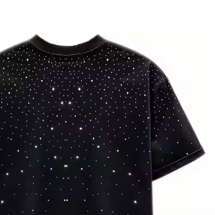 Camiseta de Alta Calidad, Unisex, con Pedrería, Manga Corta, a la Moda, 100% Algodón, Corte Holgado para Hombre