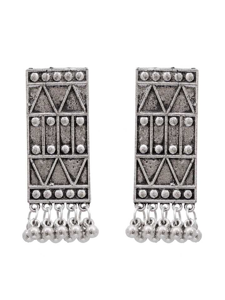 Product Name:Oxidised Silver Square Long Necklace Set with Black Dori