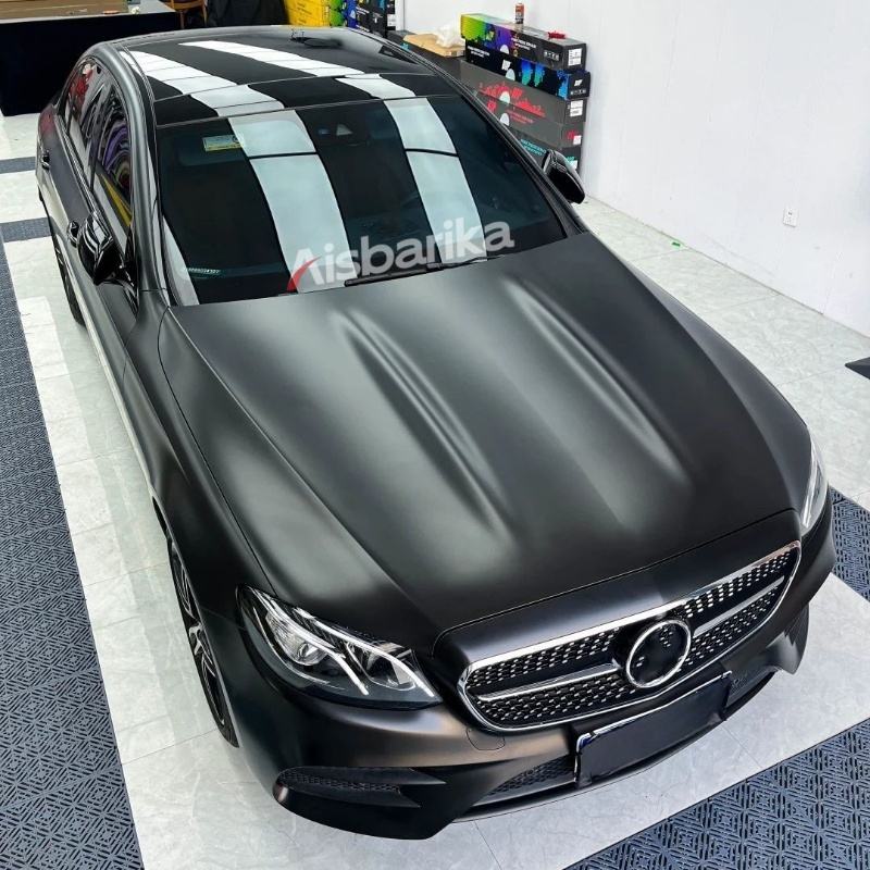 Material PET de alta calidad, película de envoltura de coche negra metálica mate, 17M 1,52 *, vinilo automático sin burbujas, pegatina de cambio de Color completo para coche