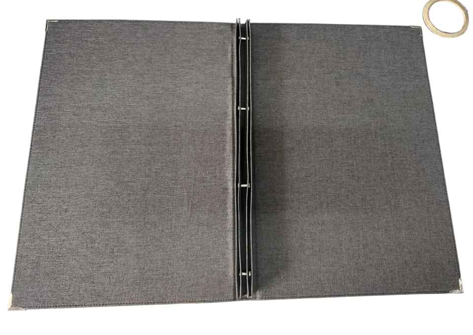 Descripción:Carpeta de menú de cuero con logotipo niquelado