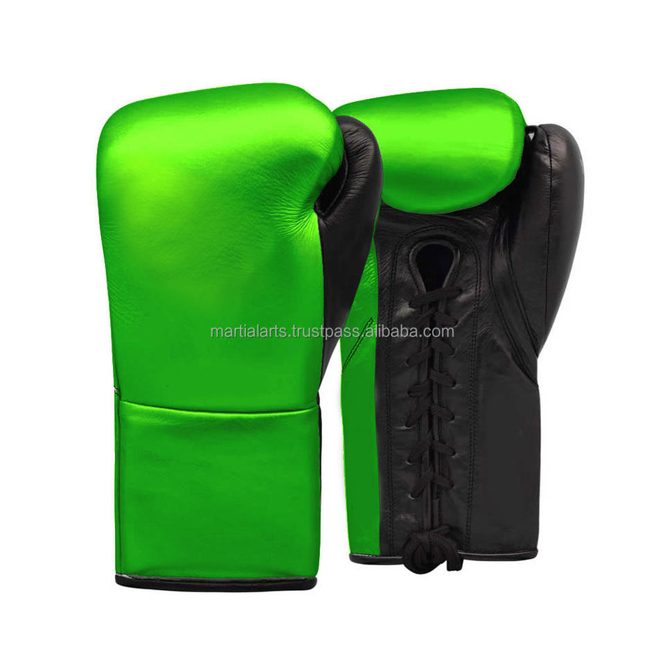 Guantes de kick boxing de PVC de alta calidad estilo mexicano verde con cordones personalizados para entrenamiento y competiciones hechos en Pakistán