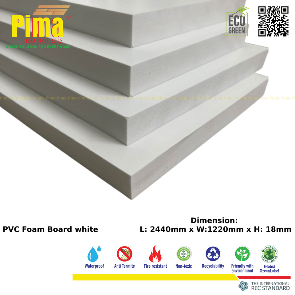 Lámina de Espuma de PVC WPC de Alta Calidad, 18 mm de Espesor, 0.6 G/cm3 de Densidad, Color Blanco, Impermeable, para Paneles de Pared, Molduras y Muebles