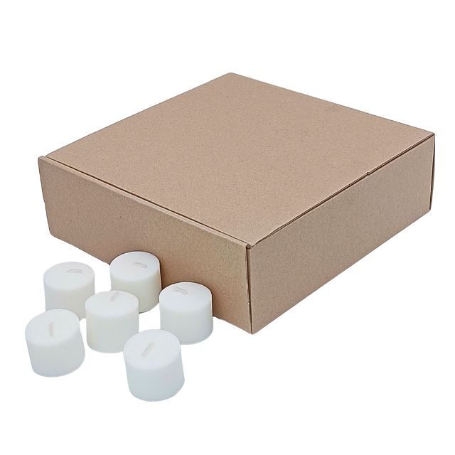 Descripción de empaquetado:72 Velas Votivas Prensadas en una Caja de Cartón