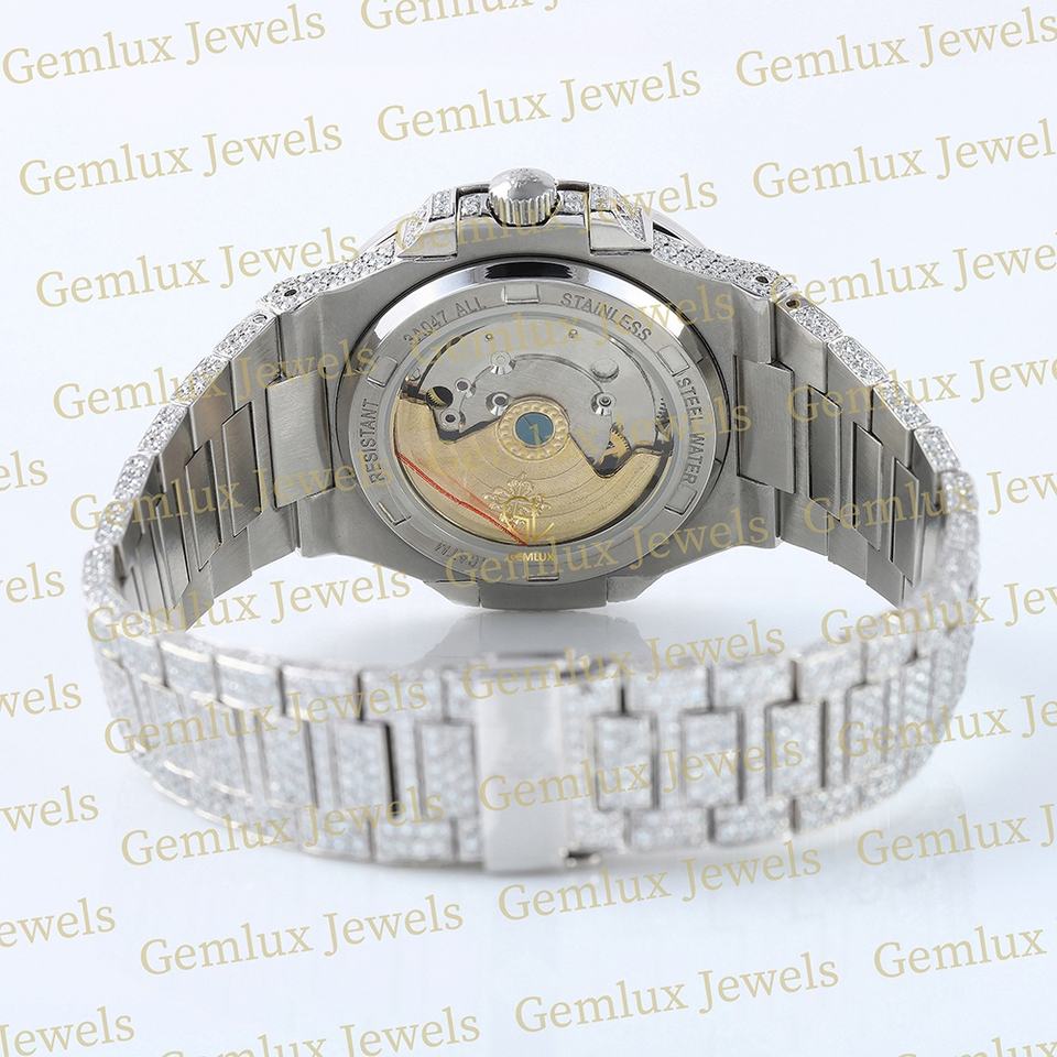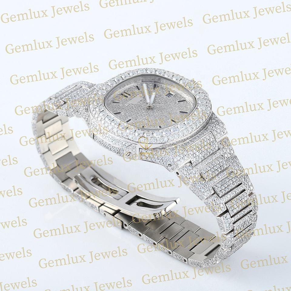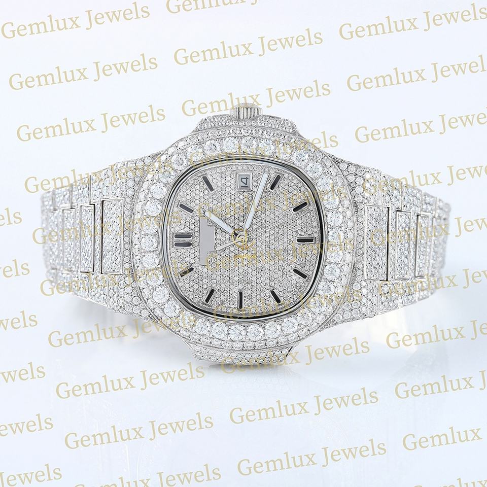 Alta calidad Pass Diamond Tester Cojín Dial D VVS Iced Out Dial Moissanite Diamond Full White Movimiento automático Reloj de hip hop