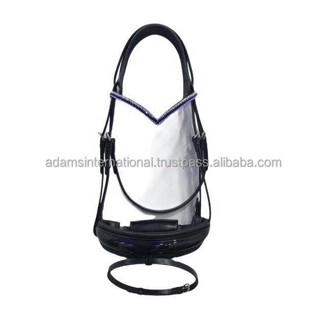 Brida de caballo de charol de alta calidad con relleno suave y banda de cejas de cristal ostentoso Productos Premium para caballos