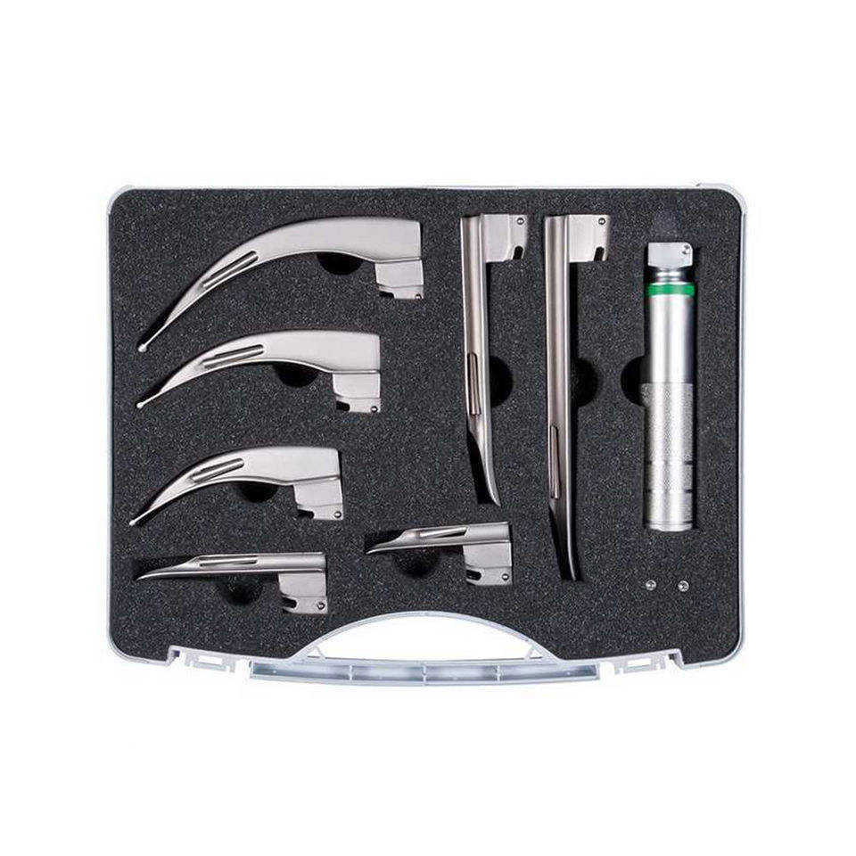 Set de Laringoscopio Pediátrico de Alta Calidad, 4 Hojas, Mango Manual de Acero Inoxidable, Acabado Plateado, Ligero, por Surgiright