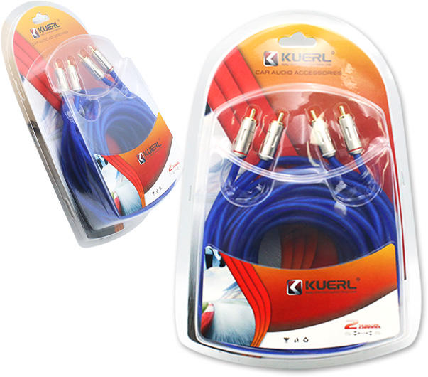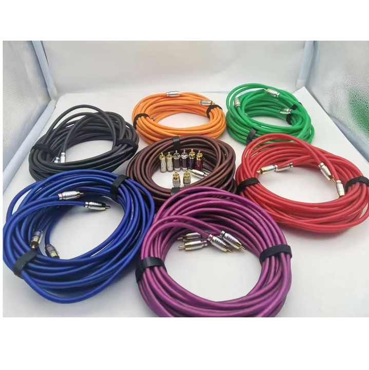 Rendimiento de alta calidad Cable de PVC desnudo Cobre 5M Cable RCA de audio para automóvil con caja de color Embalaje de Blíster