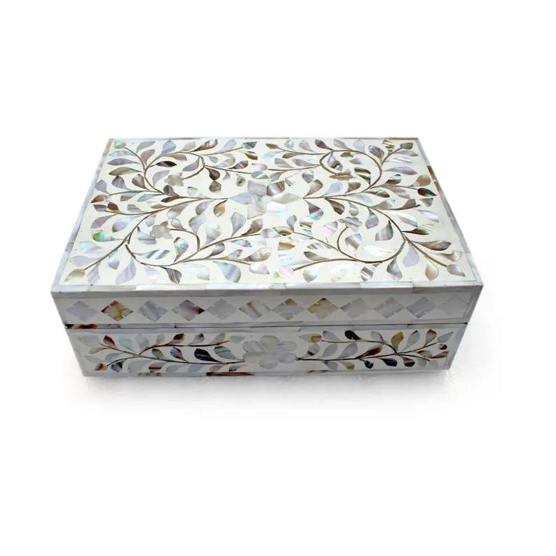 Caja de almacenamiento de incrustaciones de hueso personalizada de alta calidad Patrón cuadrado Nombre Logo Grabado Color personalizado Zona artesanal Precio al por mayor