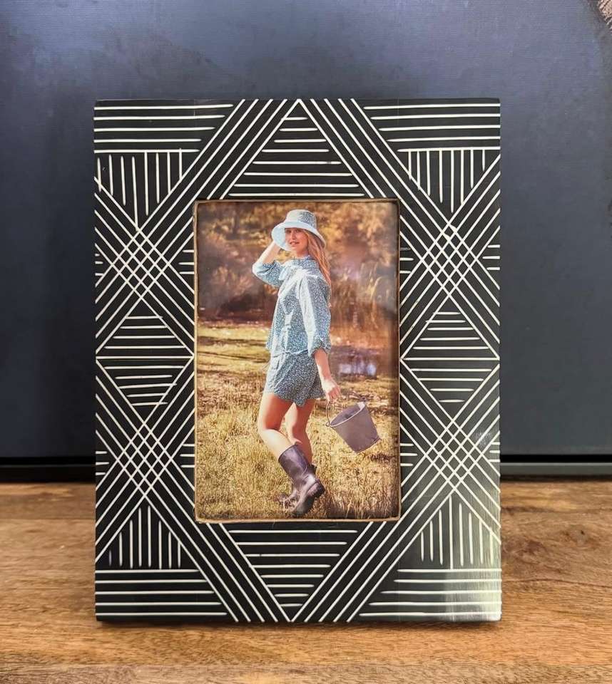 Marco de fotos de alta calidad con incrustaciones de resina y acabado brillante en resina, marco de fotos MDF a precio mayorista bajo.