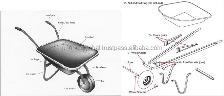 Carretilla de Alta Calidad PhuLong Global Fabricada en Vietnam con Rueda Neumática, Bandeja de Plástico y Metal, Garantía de 3 Años, Fácil Montaje