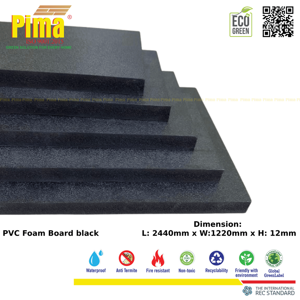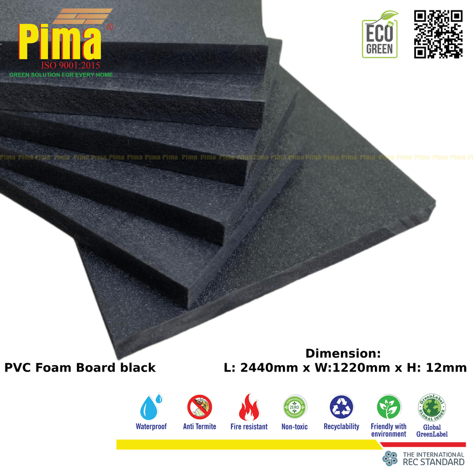 Lámina de Espuma de PVC WPC Pima de Alta Calidad, 12 mm, Negra, Densidad 0.6 G/cm3, Paneles Impermeables para Muebles, Molduras de Pared, Revestimiento
