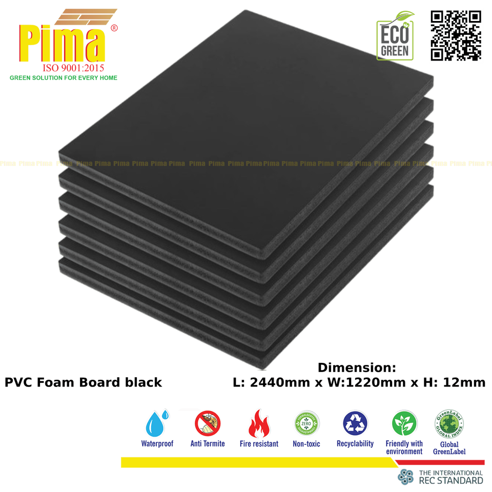 Lámina de Espuma de PVC WPC Pima de Alta Calidad, Modelo 20250514, 12 mm de Espesor, 0.6 G/cm3 de Densidad, Color Negro, Impermeable, para Muebles y Paredes