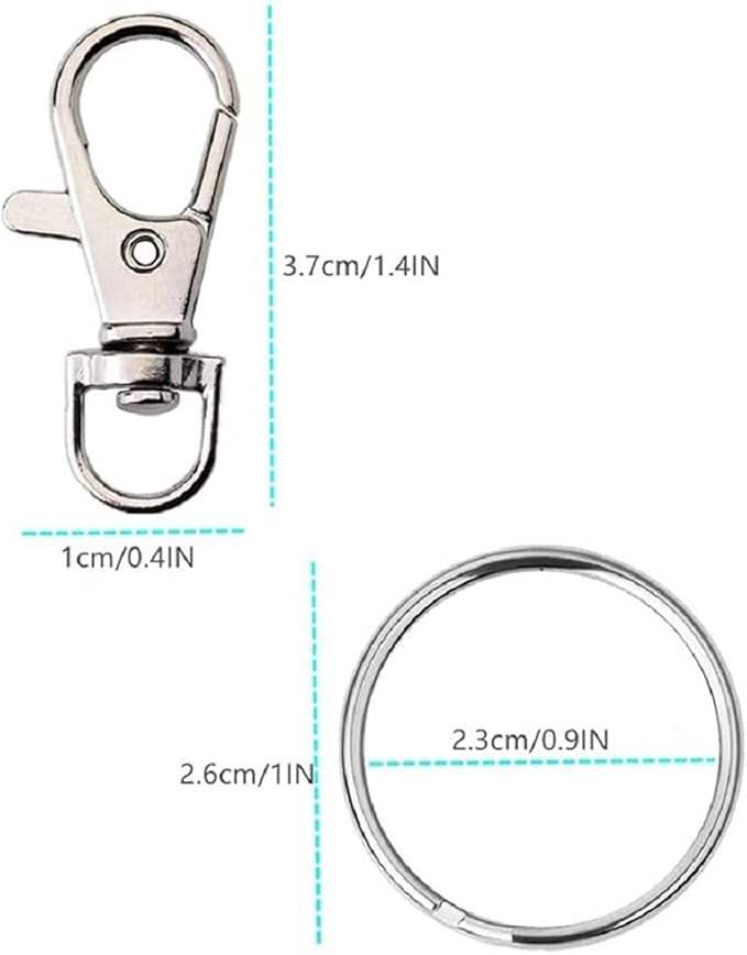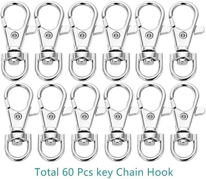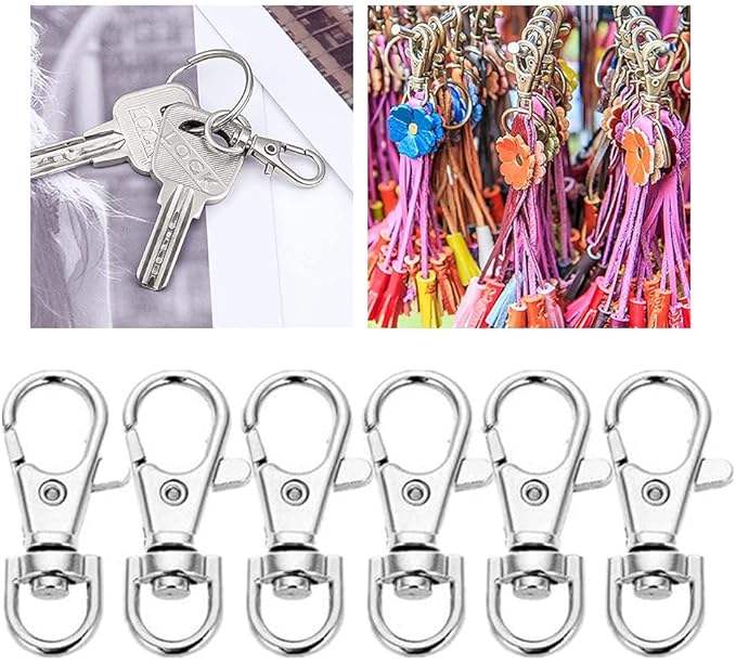 Llaveros con Mosquetón Giratorio de Alta Calidad con Ganchos Metálicos Resistentes, Color Plateado, 10 Piezas