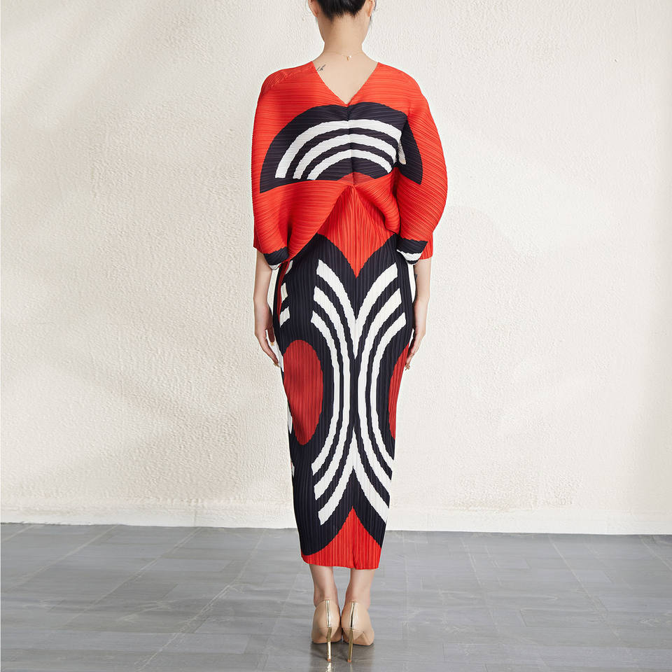 Vestido plisado de alta calidad suelto 50-100kg usable cuello en V manga murciélago vestido de talla grande diseñador elegante fabricante de ropa