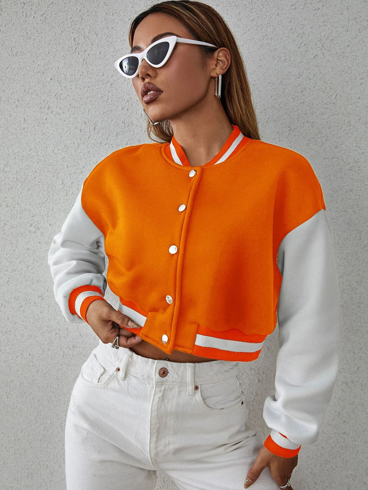 Chaqueta Universitaria de Alta Calidad para Mujer, Talla Grande, Estilo Corto, Chaquetas Universitarias de Moda
