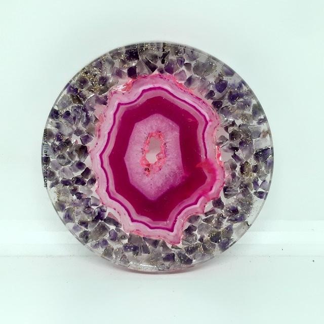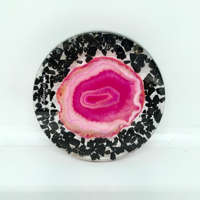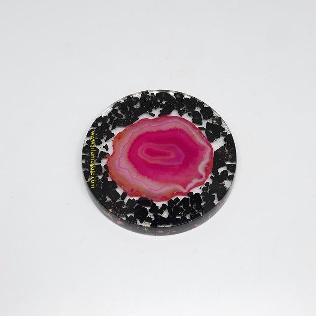 Black Tourmaline Pink Agate Coaster