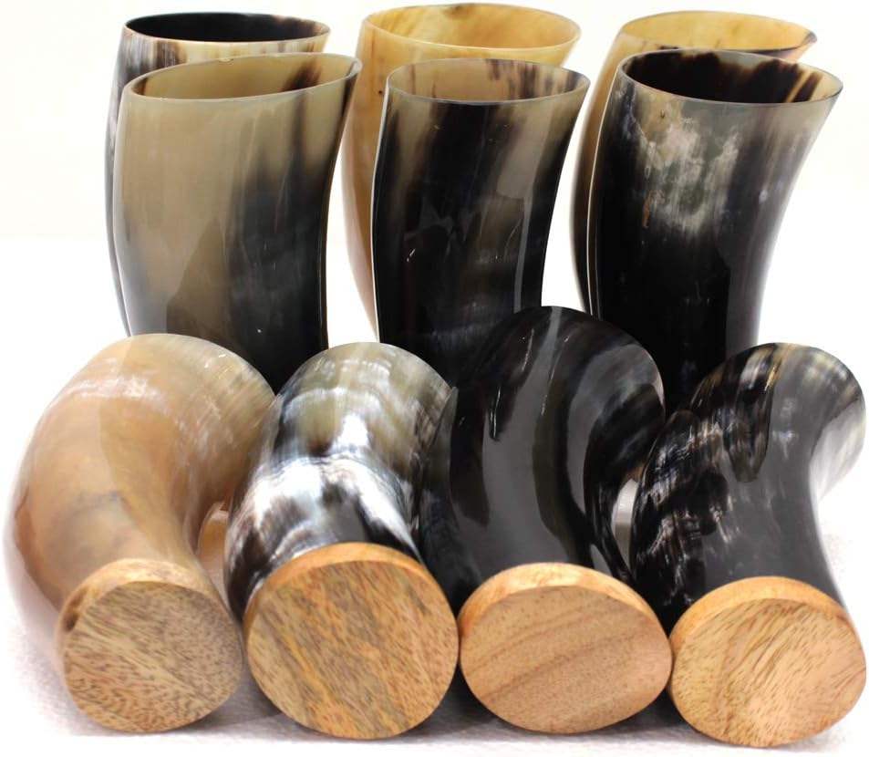 Cuerno Vikingo Natural Pulido de Alta Calidad con Base Tallada para Beber, Vaso Corto para Hidromiel, Cerveza, Decoración del Hogar
