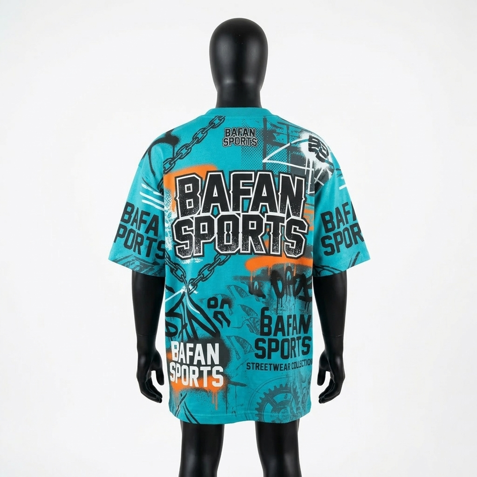 Camiseta de poliéster de alta calidad para hombre, corte holgado, color verde azulado, sublimación AOP, personalizada, 100% algodón, corte holgado, estampada.