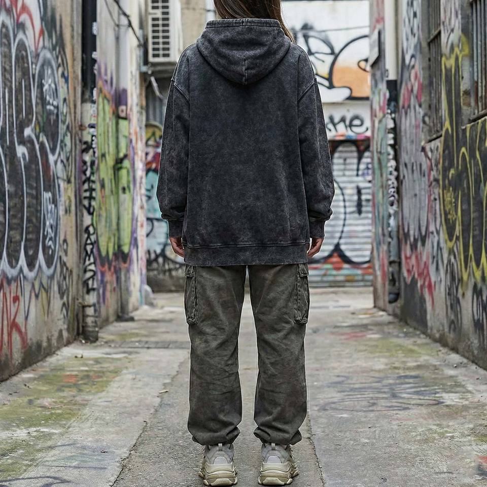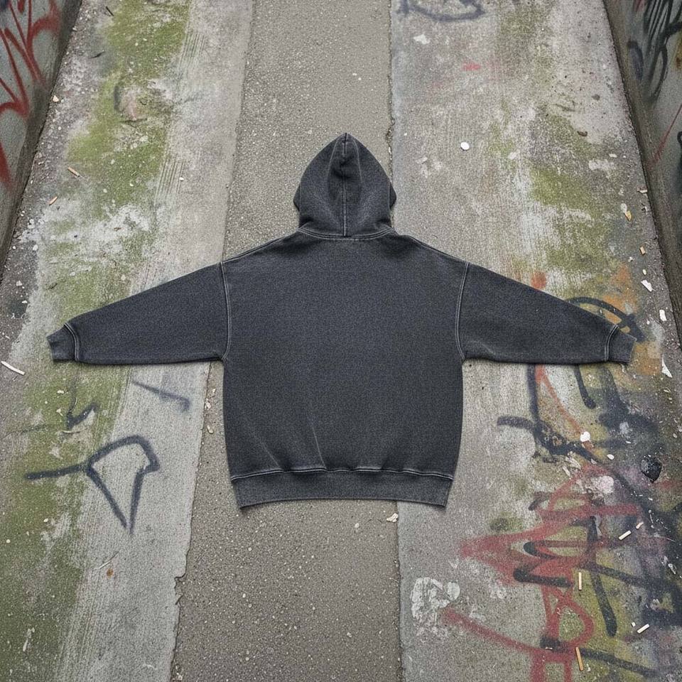 Sudadera con Capucha de Invierno de Alta Calidad en Felpa Francesa de Poliéster/Algodón, Lavado al Aceite, Estilo Urbano Desgastado en Color Carbón, Bordado 3D