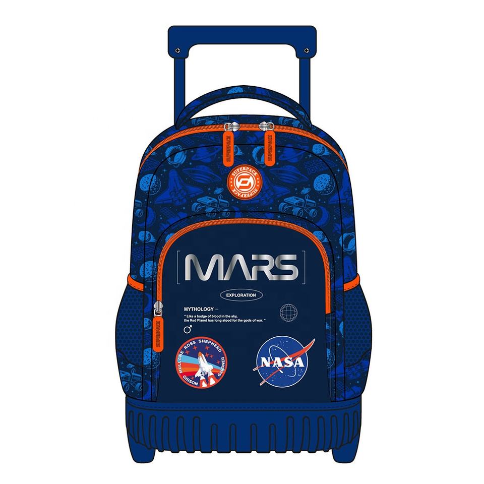 Mochila de poliéster de alta calidad KIG Motor-Cross Trolley 2 ruedas con almuerzo y bolsa para bolígrafos Bolsa de transporte de viaje escolar para niños